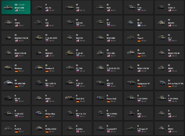 VII - 1, V - 1 M1A1 AIM, AH-1G, T92, M26, T-44, T26E1-1, T26E5, T34, ASU-85, IS-2, M-51, M41A1, M4A3E2 (76) W