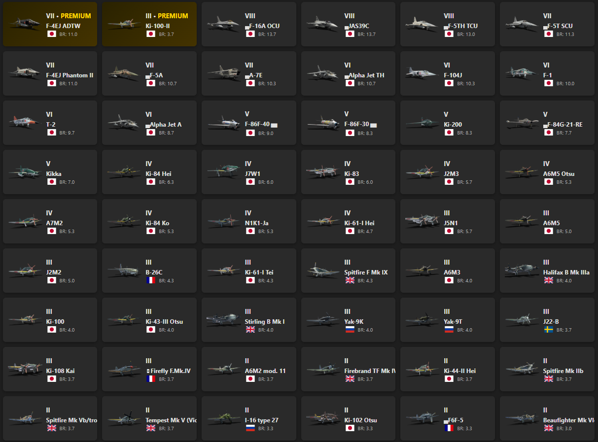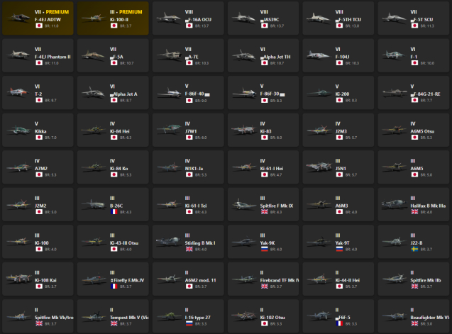 VIII - 3, VII - 5 F-4EJ ADTW, Ki-100-II, F-16A OCU, JAS39C, F-5TH TCU, F-5T SCU, F-4EJ Phantom II, F-5A, A-7E