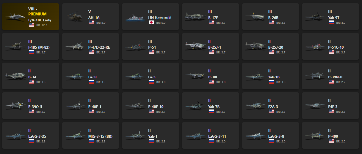 VIII - 1 F/A-18C Early, AH-1G, IJN Hatsuzuki, B-17E, B-26B, Yak-9T, I-185 (M-82), P-47D-22-RE, P-51, B-25J-1, B-25J-20