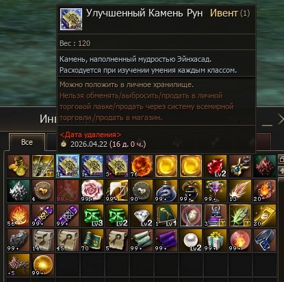 1 временный улучшеный камень рун (до 22.04) + 1 не передаваемый