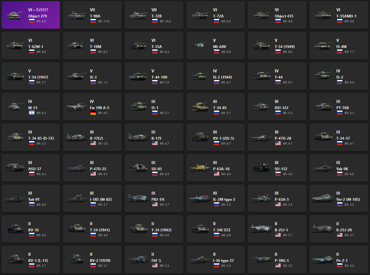 Object 279. VII - 2, VI - 7, V - 6 T-90A, T-72B, T-72A, Object 435, T-55AMD-1, T-62M-1, T-10M, T-55A, Mi-4AV