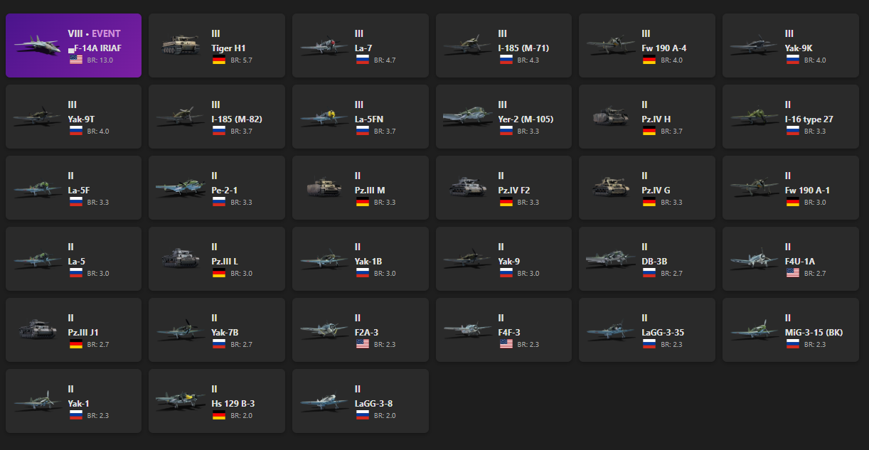 VIII - 1 ▄F-14A IRIAF, Tiger H1, La-7, I-185 (M-71), Fw 190 A-4, Yak-9K, Yak-9T, I-185 (M-82), La-5FN