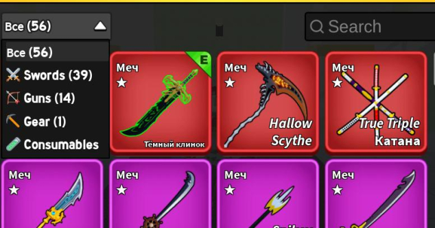 Мечи: 39 штук, все «на звездочку», у всех открыты скиллы.