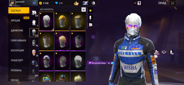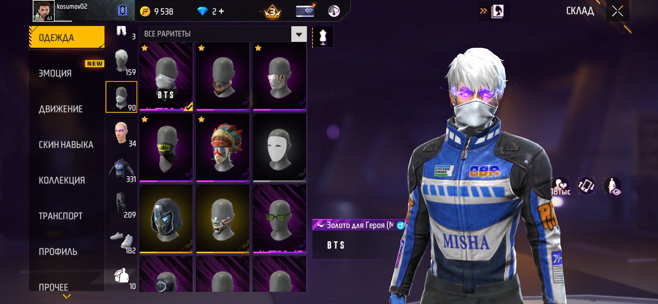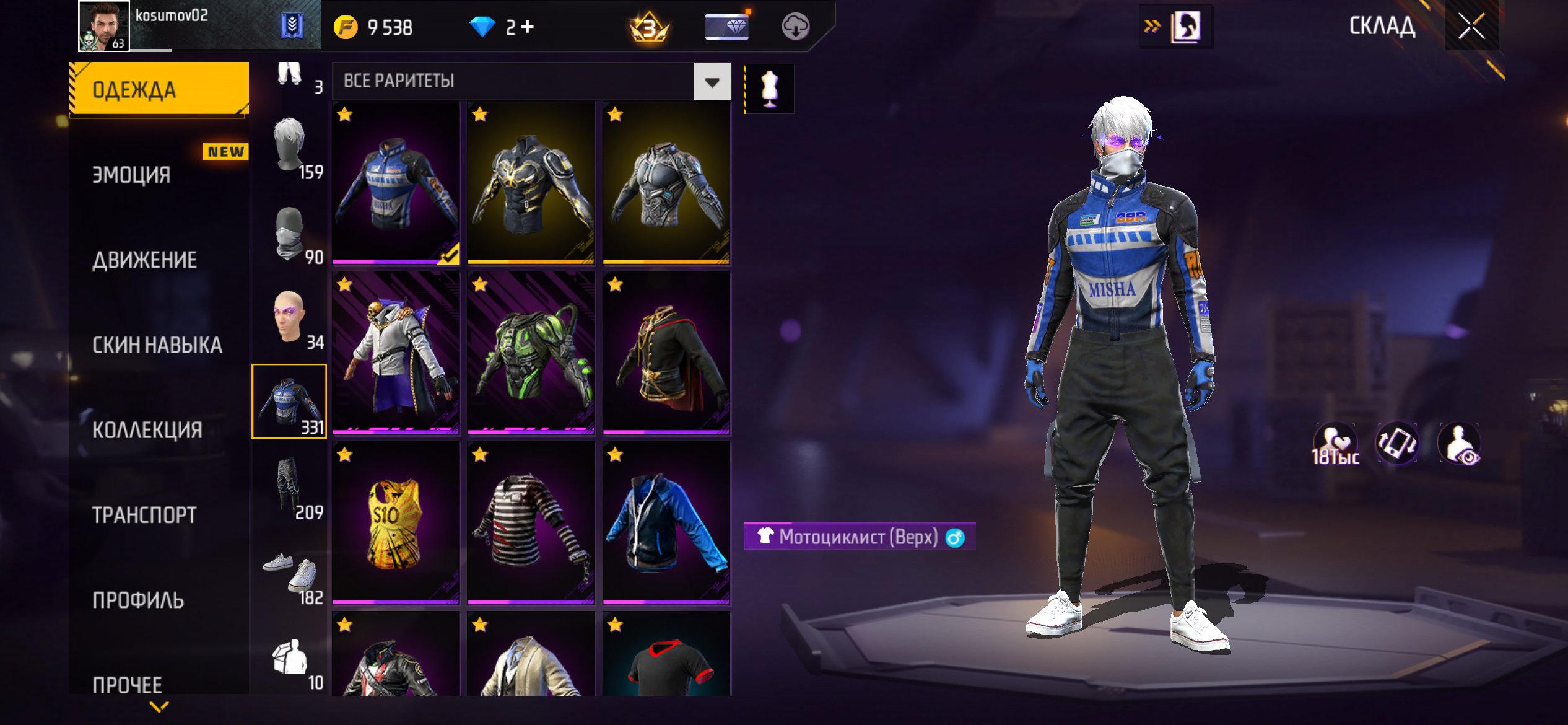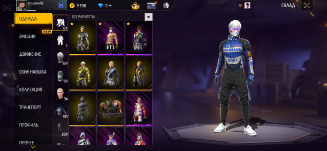 Есть джазовые штаны и пуховые штаны и куча Олд вещей и Дона вещей эмоции 32 и м4а1 земляной два эволюция мп5 3 лвл Дробаш эво 3 лвл!!! Привязка Основная гугл без доп без резервной почты!