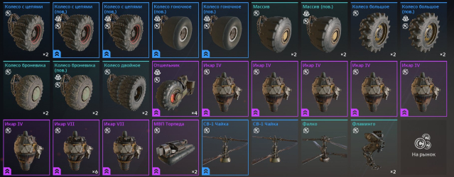 ⚪Большое кол-во различных НК на кабины, оружия, колёса в тем числе ( Турнирных )