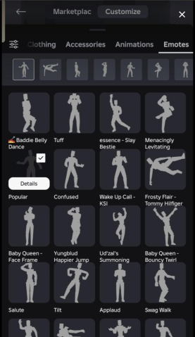 На этом аккаунте очень много одежды и аксессуаров, так же анимации и эмоции ⭐