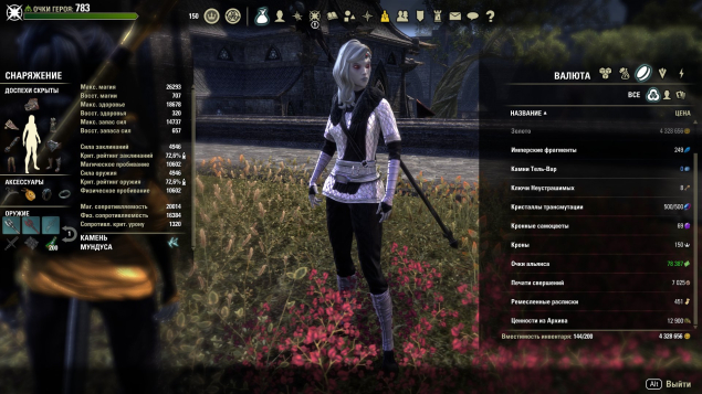 Подробное описание: Есть два перса — мастер рун и рыцарь дракона(используется как склад), есть орсиниум и ги воров остальные на скрине