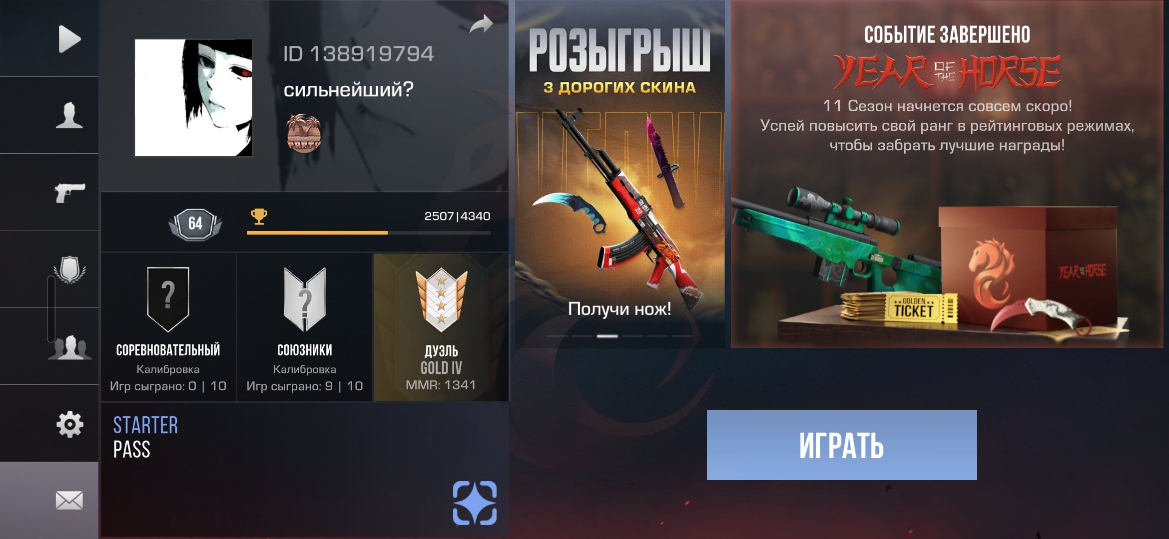 Звание: Gold lVКраткое описание: Акаунт с 3 сезона с медалями хот винтер пати,2023,2025 года