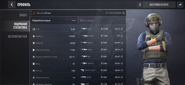 Подробное описание: На аккаунте присутствует нож м9 и прочие скины, наиграно много часов, хорошее кд в не рейтинговых играх, много медалей, играл с 3 сезона