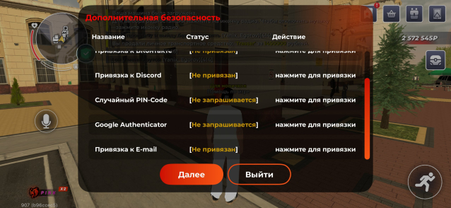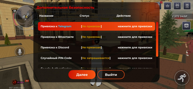 – ввод команды /time в чате (для подтверждения времени входа).