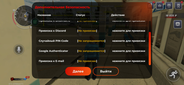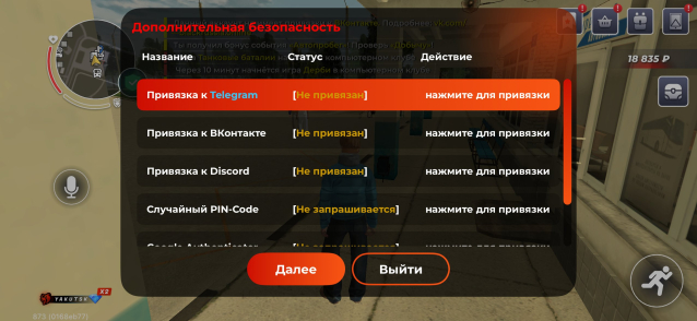 – ввод команды /time в чате (для подтверждения времени входа).