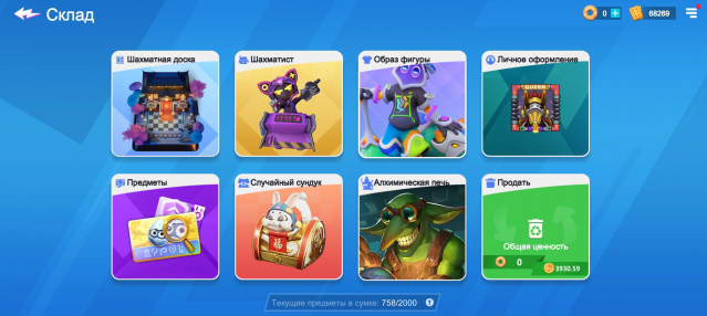 Подробное описание: Огромное количество скинов на персонажей, досок и шахматистов, 650 карт для страхования рейтинга стать ферзем намного проще (стоимость инвентаря ~5000 драгокоинов около 550 баксов), если хотите узнать более подробно то пишите, расскажу-покажу.