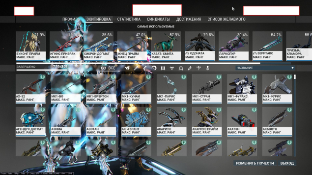 — В коллекции почти все варфреймы и много оружия