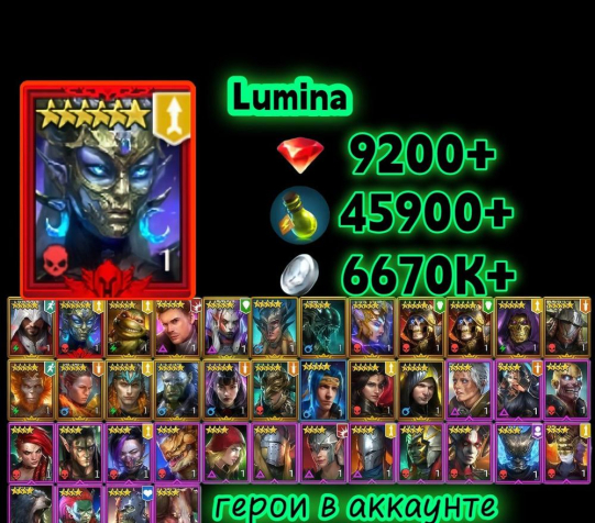 ⚡️ ПОЛНЫЙ ДОСТУП ⚡️ Lumina ⚡️ 9200+ Рубинов ⚡️ 45900+ Сила ⚡️ СМОТРИТЕ ОПИСАНИЕ ⚡️Эпических героев: 21