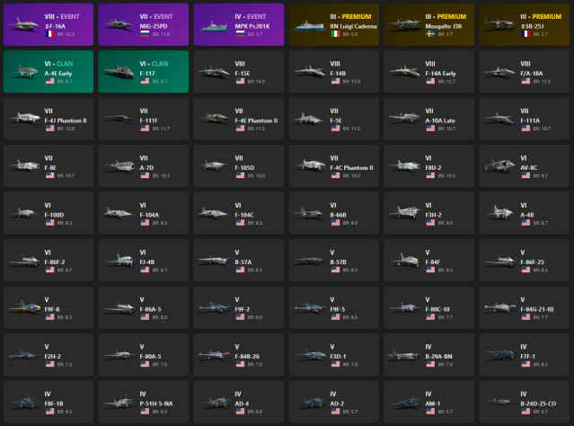VIII - 5, VII - 11 ◘F-16A, MiG-25PD, MPK Pr.201K, F-117, F-15E, F-14B, F-14A Early, F/A-18A, F-4J Phantom II, F-111A