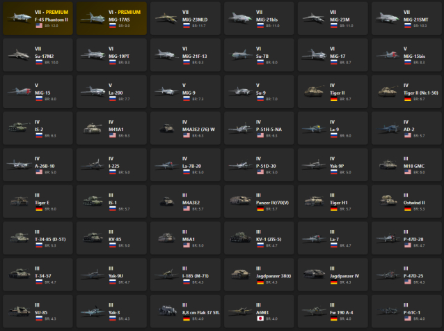 VII - 6, VI - 5 F-4S Phantom II, MiG-17AS, MiG-23MLD, MiG-21bis, MiG-23M, MiG-21SMT, Su-17M2, MiG-19PT, MiG-21F-13
