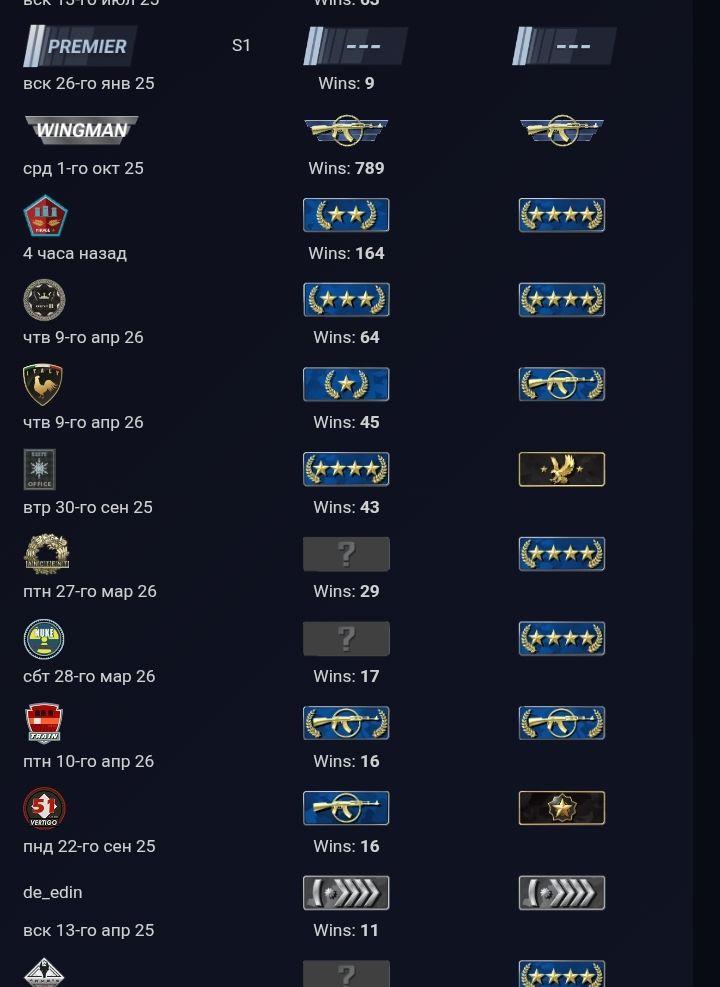 На аккаунте получены неплохие звания на картах в ММ. В премьере при калибровке бросало на красные рейтинги.