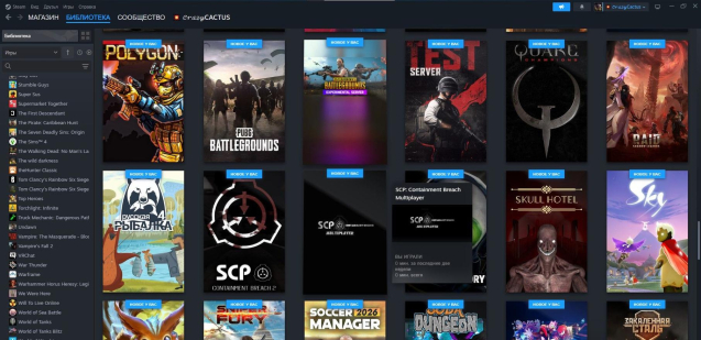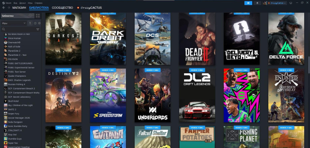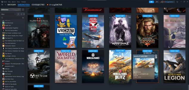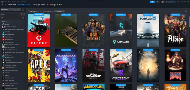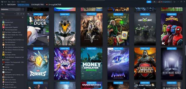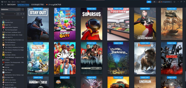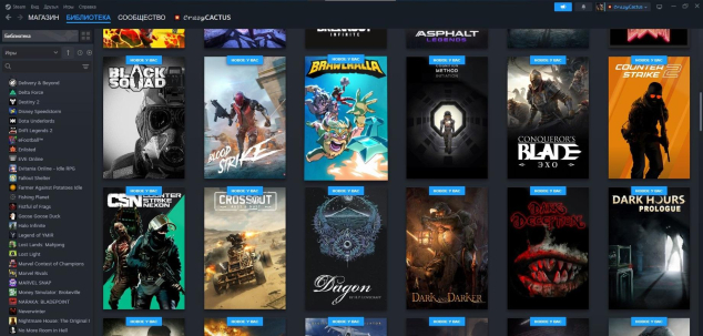 На аккаунт Steam добавлено 100+ разных игр из библиотеки.