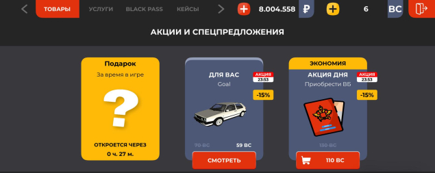 8 000 000 игрового баланса — хватит на первые крутые покупки;
