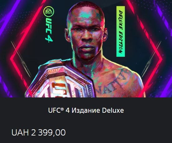 Тип предложения: ПродажаКраткое описание: ❤️🤍UFC 4 — Deluxe Edition🎮PS4 | PS5🎮На ваш или наш новый аккаунт🌍Регион — Турция🌍