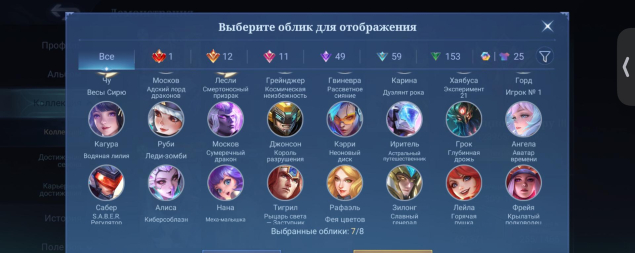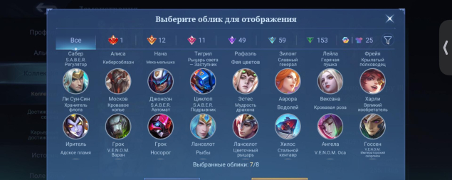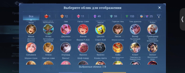-Эпик атлас, хуфра, берелик, уранус, чанэ, ланцелот, хилос, вексана, Харли, иритель, Москва, лсс, фрея, хилонг, Рафаэль, Нана и Алиса