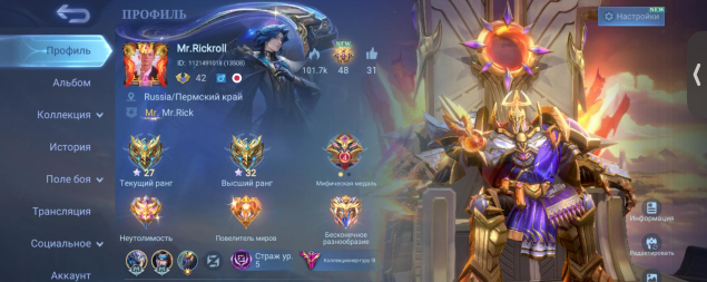 ⚡️ ПОЛНЫЙ ДОСТУП ⚡️ аккаунт в млбб ⚡️ донат в 2 раза дешевле чем на ру ⚡️ СМОТРИТЕ ОПИСАНИЕ ⚡️Ранг: Мифическая слава