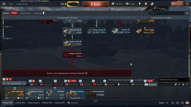 Израиль наземка: до первых 4 меркав вкачано, можно исследовать чапараль и намер, прем 6 ранга Merkava Mk.2D .