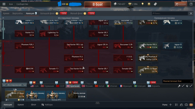 Британия Авиация: до 6 ранга вкачена ветка, есть прем 7 ранга МиГ-21 Bison .