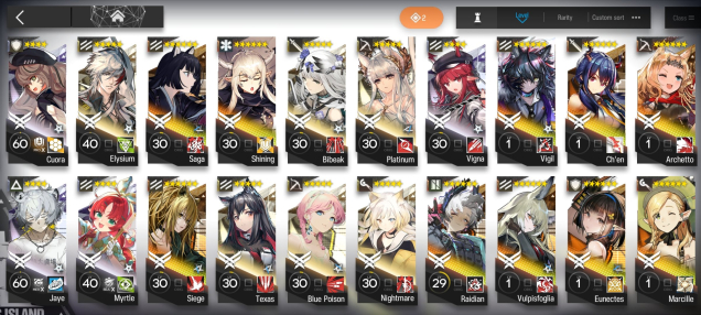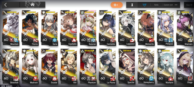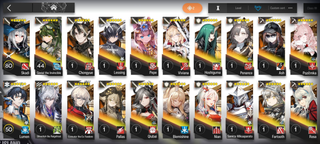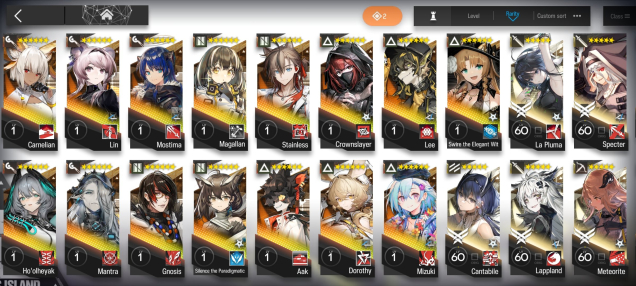 369 операторов. 99 6*, из них 22/28 лимитных 6* (отсутствуют даск, альтер скади, альтер спектра, муму, висадель 0.5 и альтер нерл). Большая часть операторов с модулями, либо имеют возможность их активировать — ресы позволяют активировать как минимум 1 модуль ВСЕМ имеющимся 6* и улучшить данный модуль на максимум.
