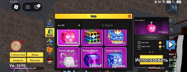 На акаунте 5 пермов и есть 2 гемпасса х2 мани и х2 мастери на аккаунте донат скин сьеден фрукт грохота и очень дёшево