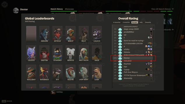 За 30 дней на аккаунте сыграно 50 игр и он отображается в лидерборде