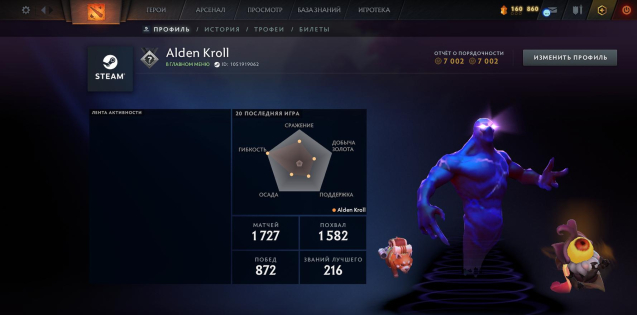 Статистика: 1727 матчей, адекватная порядочность (7000+), отличный фундамент для игры.