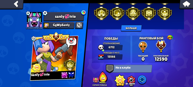 Об аккаунте: на почте 6 основных аккаунтов в сумме на них 4.144.000🏆, огромный фл из кучи игроков 1🍋+ кубков, а также 4 мастера👹на ОДНОМ акке, и 1 мастер на втором ❗