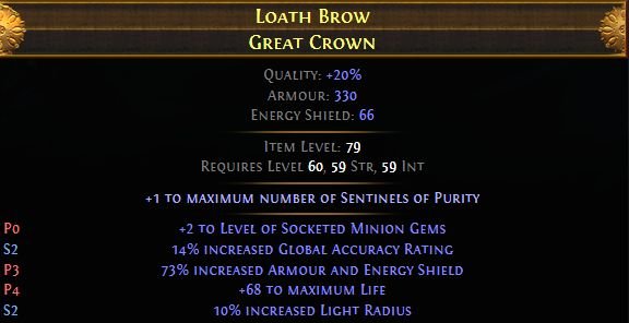 Нежелающий выступ Большая корона, Доспехи