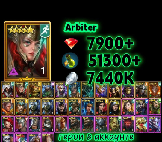 ⚡️ ПОЛНЫЙ ДОСТУП ⚡️ Arbiter ⚡️ 7900+ Рубинов ⚡️ 51300 Энергии ⚡️ СМОТРИТЕ ОПИСАНИЕ ⚡️Эпических героев: 21