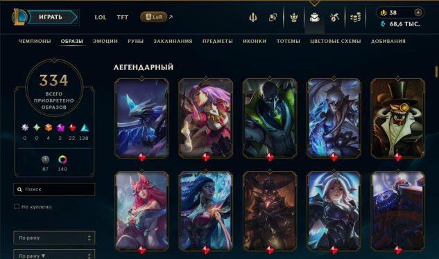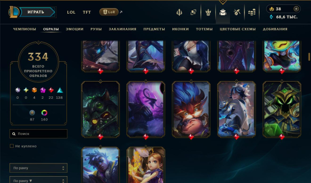 ⚡️ ПОЛНЫЙ ДОСТУП ⚡️ RU ⚡️ Алмаз 3 (32 LP) ⚡️, 334 скина, есть тфт контент. ⚡️ СМОТРИТЕ ОПИСАНИЕ ⚡️Ранг: Алмаз