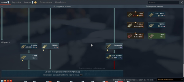 СССР: Топ наземка, СУ-30СМ, СУ-34, МИГ-29 СМТ, 350к опыта до МИ-28НМ. Из премов: Турмс, Су-7БМК, Ка-50, талисман на Т-80Б, марафонный Объект 292.