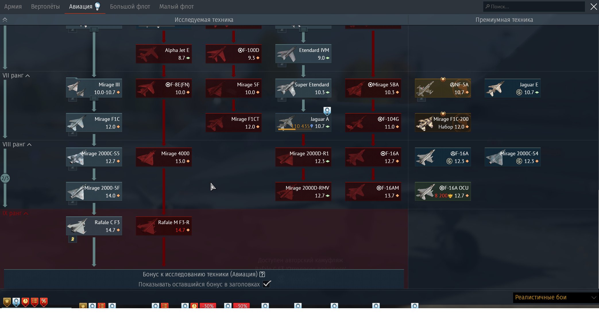 Подробное описание: Франция 8 Ранг. Ветка до Rafale C F3.