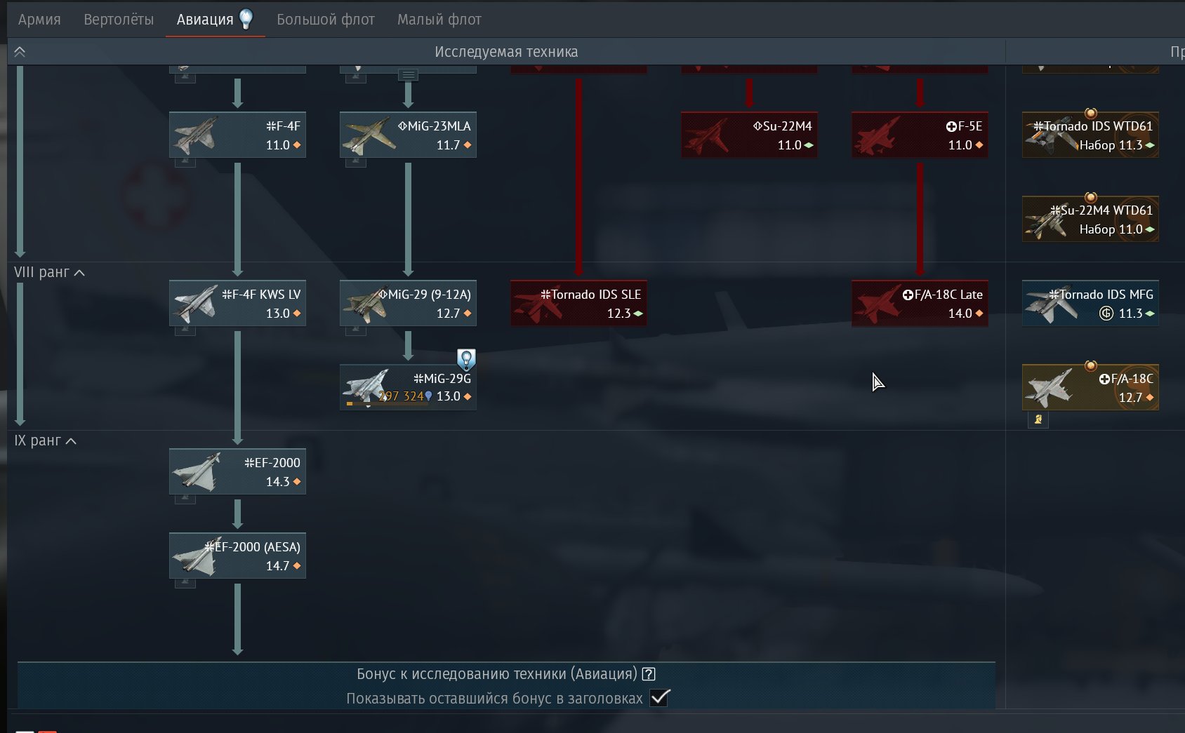 Подробное описание: Германия 9 Ранг. Ветка до EF-2000 (AESA).