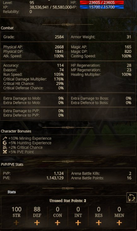 The Quinfall with an LVL 100 character