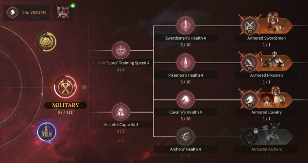 Полностью прокачанный универ/наемники/фабрики, лошади на 90%. Полностью отстроены все здания.