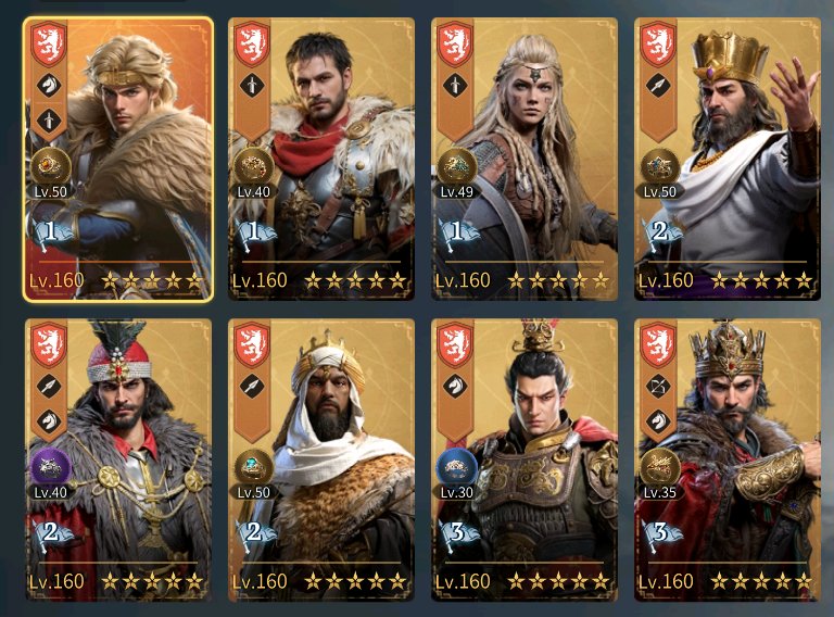 Мечи/Копья/Кони на 8 уровне войск. Есть все герои, все нужные на 5зв. +1800 желтых медалек. Прокачанные кольца и украшения.