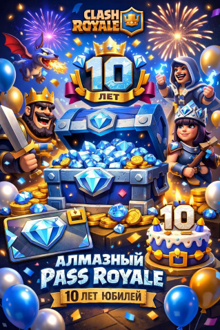 🔟💎🔟 𝐃𝐈𝐀𝐌𝐎𝐍𝐃 𝐏𝐀𝐒𝐒 𝐑𝐎𝐘𝐀𝐋𝐄 💎🔟 💎 ДЕСЯТАЯ ГОДОВЩИНА 🔟💎 🔟АЛМАЗНЫЙ БОЕВОЙ ПРОПУСК🔟, Без особой скидки, С заходом в игру (Supercell ID)