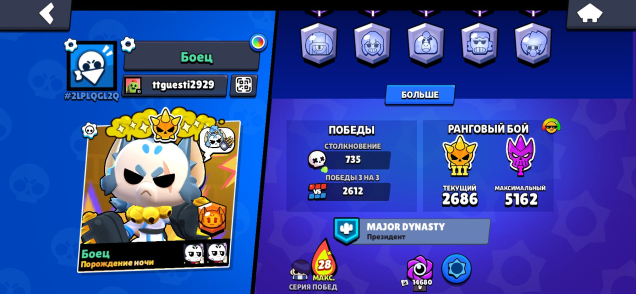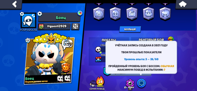 Краткое описание: Продаю акк жирныйПодробное описание: 🥰🥰🥰Продаю акк жирный с 2021 года есть редкие пины легендарные скины и мифические 22к кубков 90 бойцов есть наджия и 3500 кредитов на Сириусе есть свой большой клуб 🔥🔥🔥