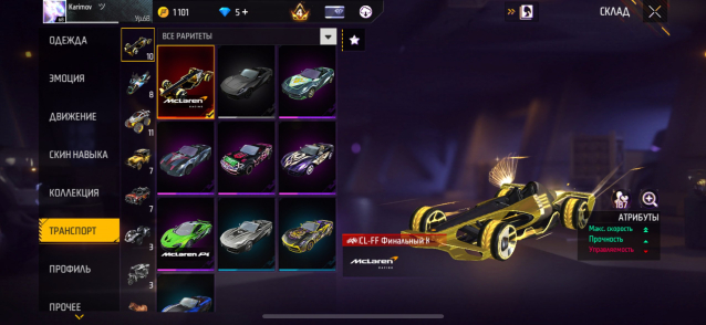 • Главные ценности: Золотой McLaren (топ скорость), редкий рюкзак «Розовый Кролик», баннеры за 6 лет игры.