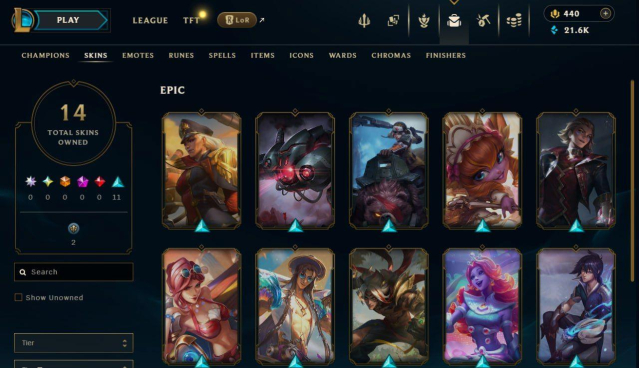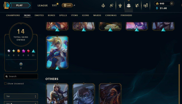 14 Скинов, 440 РП, 25 чемпионов;