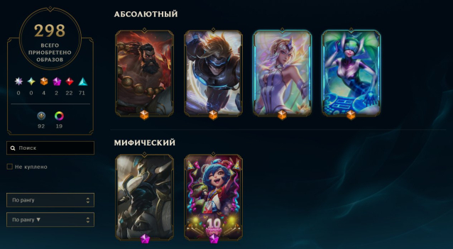 🌷Редкие Скины: SKT T1 Ли Син, Мисс Фортуна на Ватерлоо, Корки верхом на Урфе, Fnatic Корки, Зомби Брэнд, Зомби Нуну и Виллумп, TPA Нуну и Виллумп, Моряк Гангпланк, Дреднова Гангпланк, Серый Варвик, Злой и страшный Варвик, Riot Грейвз, Riot Блицкранк, SKT T1 Элиза, Барсук Тимо, Панда Тимо, Тимо из отряда «Омега», Дьяволенок Тимо, Глубоководный Кассадин, Вестник гибели Кассадин, Граф Кассадин, SSG Джарван IV, Пантеон-Персей, Рожденный рунами Зерат, Модифицированный Зерат, Сона с цитрой, DJ Сона, Лорд Дариус, Фермер Грагас, Вандал Грагас, Арктический Грагас, Тотемный Маокай, Леденцовая Поппи, Куколка Поппи, Снежный олененок Поппи, Удир с черным поясом, Хранитель духов Удир, Дядюшка Райз, Профессор Райз, Зомби Райз, Райз Белобород, Фараон Нидали, Защитник Алистар, Раммус из Фрельйорда, Фараон Амуму, Переподаренный Амуму, Почти король выпускного Амуму, Мопс'Мао, Riot Кейл, Кейл вокалистка Pentakill, Тыквоголовый Фиддлстикс, Большой сюрприз Фиддлстикс, Офицер Кейтлин, Кейтлин охотница за головами, Граф Владимир, Кровавый лорд Владимир, Твич вор в законе, Карманник Твич, Возрожденная Ривен Чемпионата мира 2012, Традиционная Седжуани, Седжуани верхом на поро, Хекстек-Синджед, Традиционный Трандл, Констебль Трандл, Рождественский Зилеан, Орн Повелитель Грома, Твистед Фэйт из преисподней, Арбитр Твистед Фэйт, Карманник Твистед Фэйт, Изгнанница Моргана, Леона из Железных Солари, SKT T1 Вейн, Светоносная Вейн, Джаксимус, Храмовник Джакс, Непобедимый Джакс, SKT T1 Калиста, Ледниковый Олаф, Мясник Олаф, SKT T1 Олаф, Панда Энни, Коммандо Гарен, Эш из племени пиктов, Пиратский адмирал Гарен, Карма из Ордена лотоса, SSG Гнар, Конфетный король Иверн