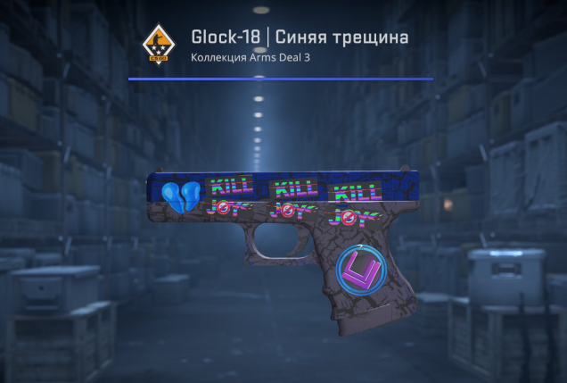 📕⚫️ Glock-18 | Синяя трещина [ Немного поношенное ] (c наклейками) ⚫️📕, Продажа, Пистолет, Glock-18, Армейское качество, Немного поношенное