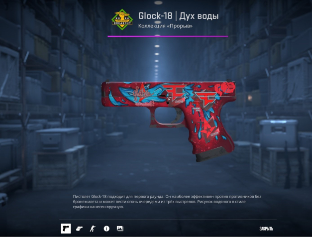 Подробное описание: 📕⚫️ Glock-18 | Дух воды [ После полевых испытаний ] (c наклейками) ⚫️📕