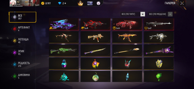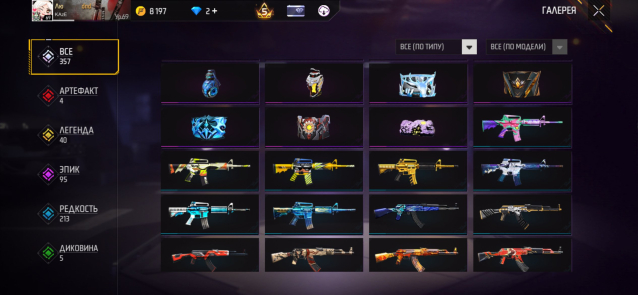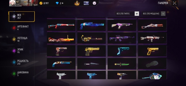 ✅ Кунай, Катана и еще 40 Легендарных + 95 Эпических скинов. Всего 357 оружий.